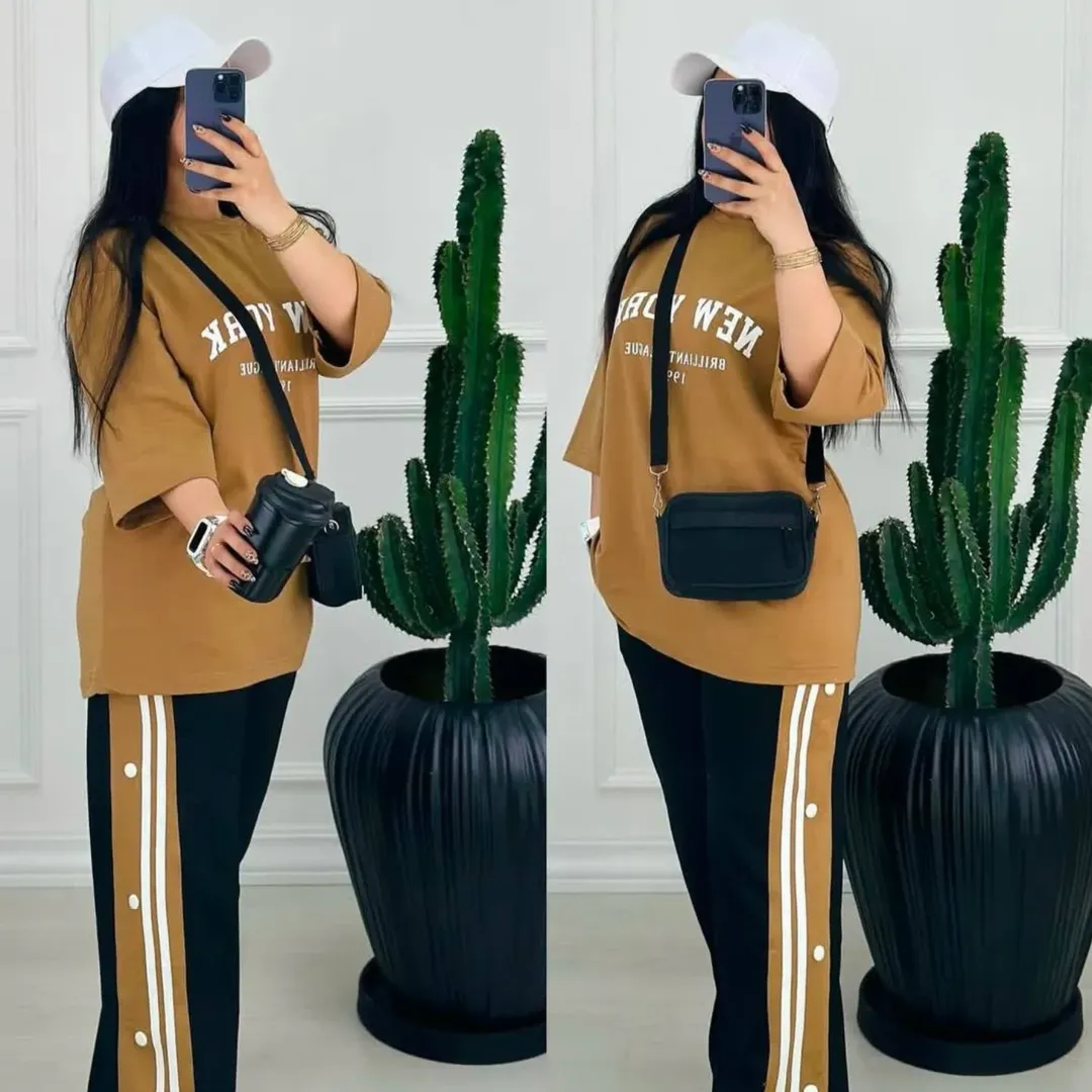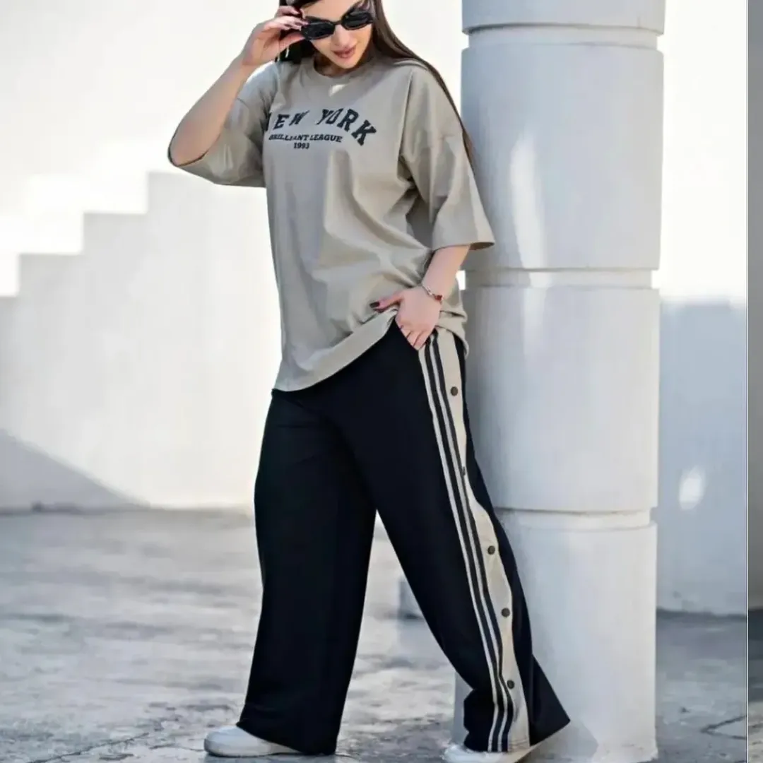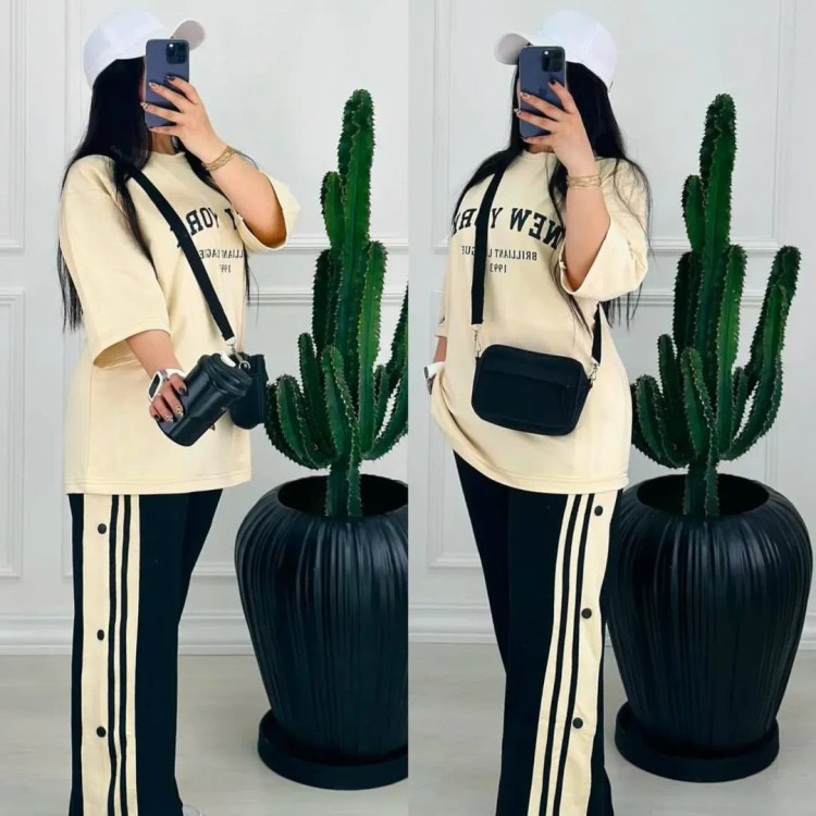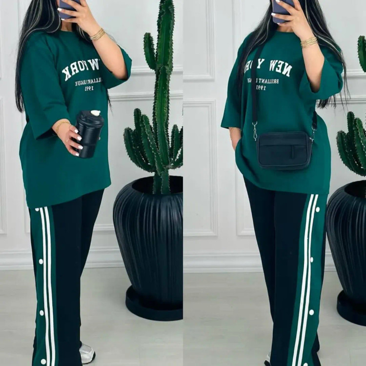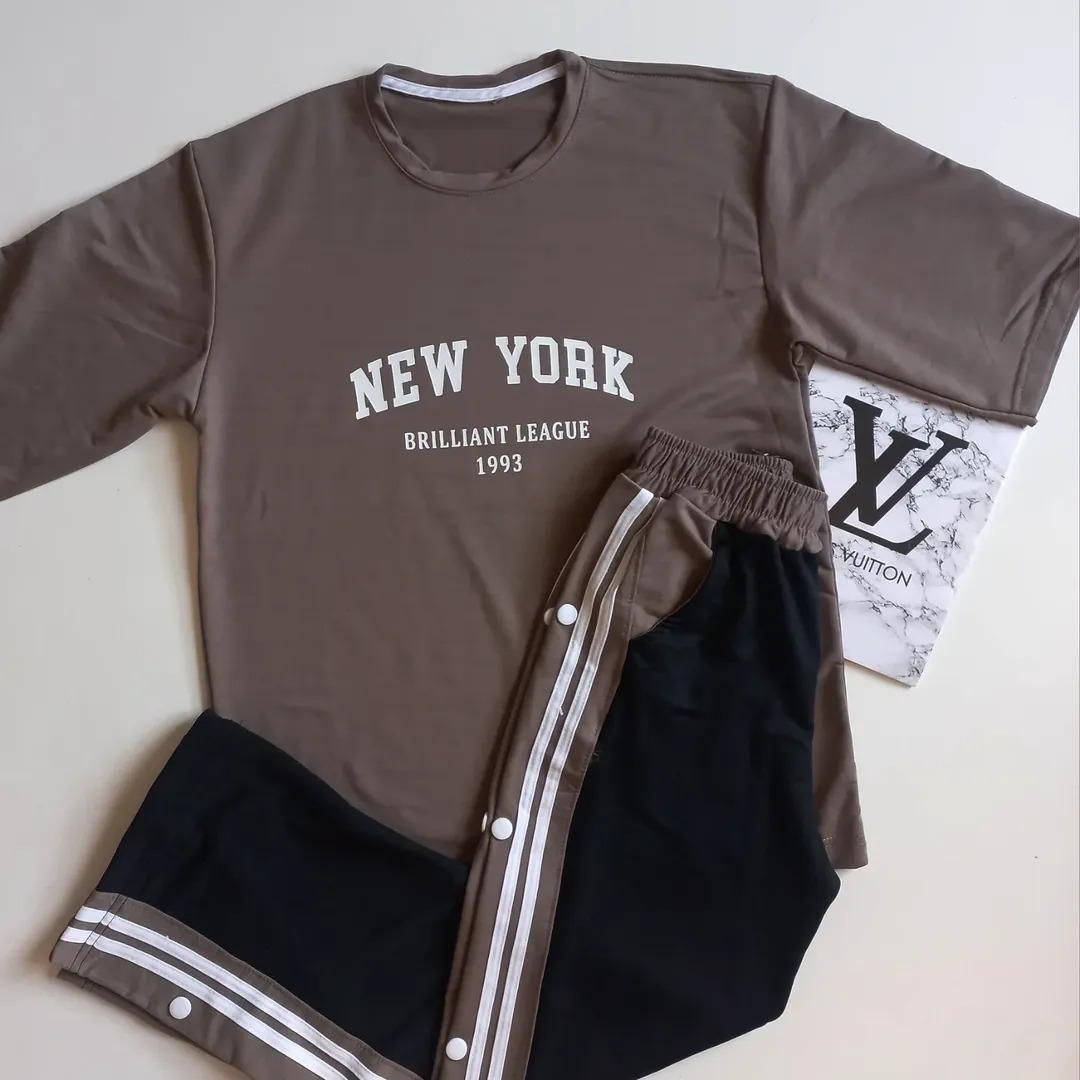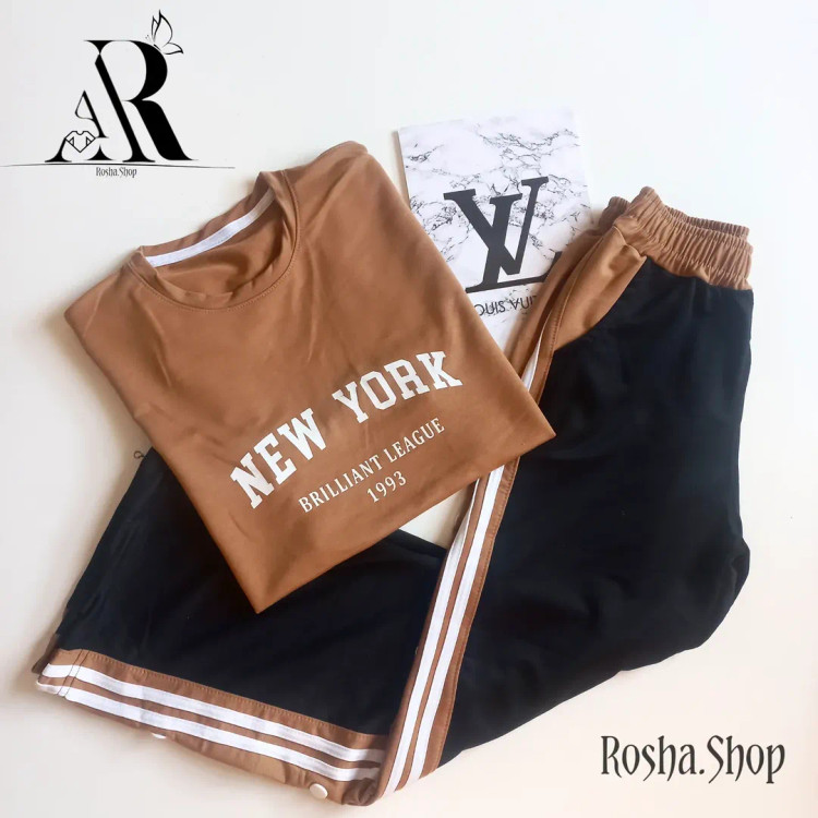 ست اسپرت تیشرت شلوار نیویورک بنظرمن با پارتنرت ست کن خوش پوش ترین ستی که میتونی داشته باشی جنس: گلکسی ویتکس مناسب چهارفصل فری سایز تا۵۰ سایزمیشه قد شلوار: ۱۰۵ دورکمردرحالت عادی:۷۰ درحالت کشسانی:۱۴۲ فاق شلوار: ۴۰ قد تیشرت: ۷۵قدآستین از یقه:۵۰ دورسینه درحالت عادی:۱۲۰ درحالت کشسانی: ۱۸۰