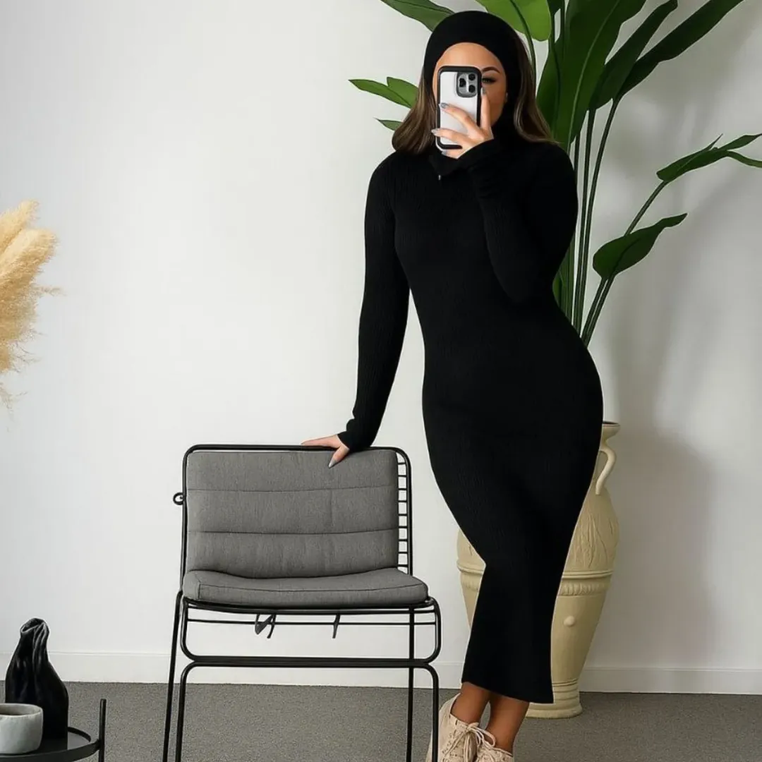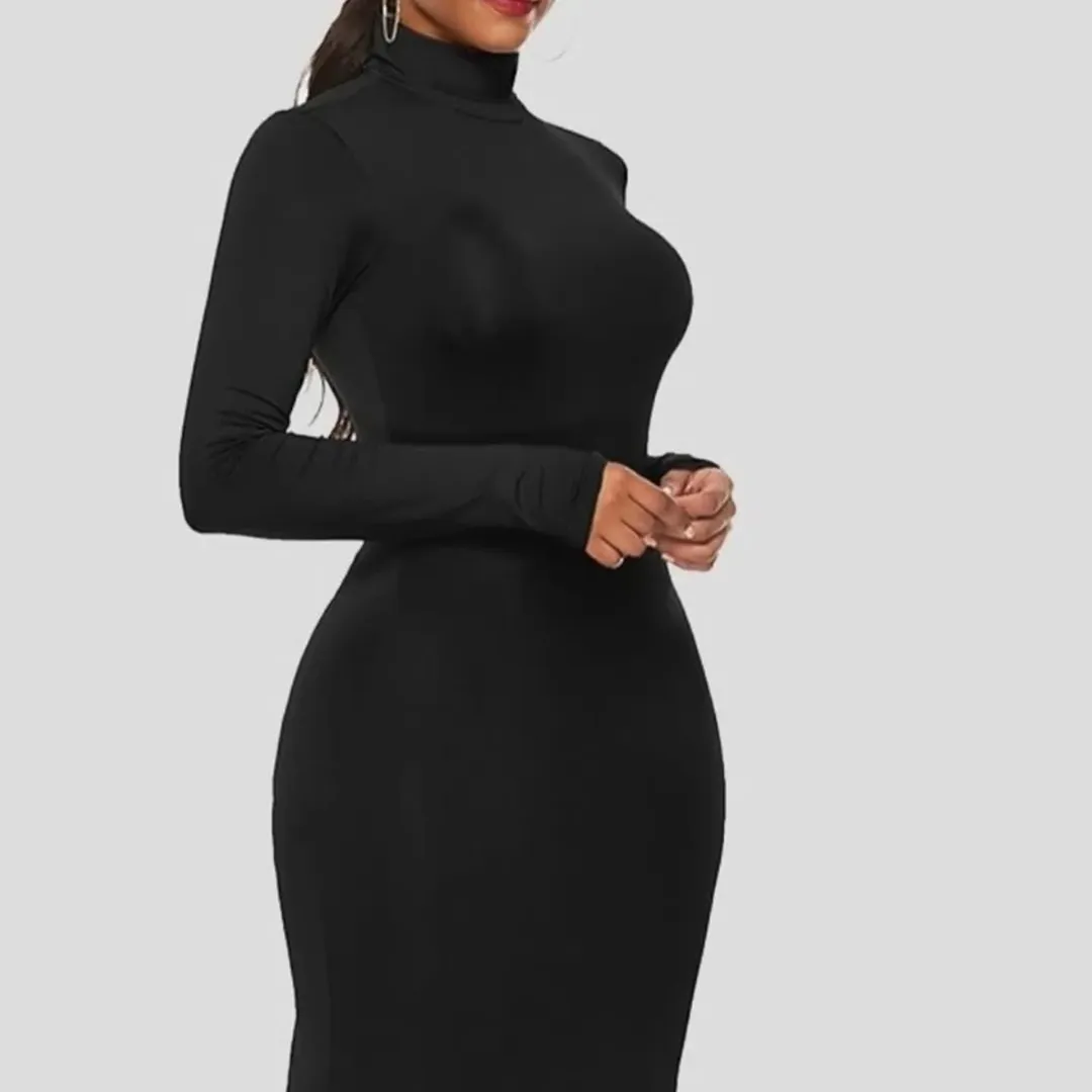 پیراهن ماکسی بلند یقه اسکی با جنس کبریتی فانریپ تک رنگ مشکی فری سایز مناسب برای سایزهای ۳۶ تا ۴۶ یه پیراهن بخر یه هد هم رایگان ببر😍 قد کار: ۱۲۲ قد آستین ازیقه: ۷۸ دورسینه درحالت عادی: ۷۵ درحالت کشسانی: ۱۴۰