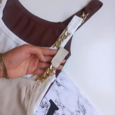 جنس: کبریتی فانریپ فری سایز تا ۴۴ قد کار: ۵۰ دور سینه در حالت عادی: ۶۵ در حالت کشسانی: ۱۴۵
