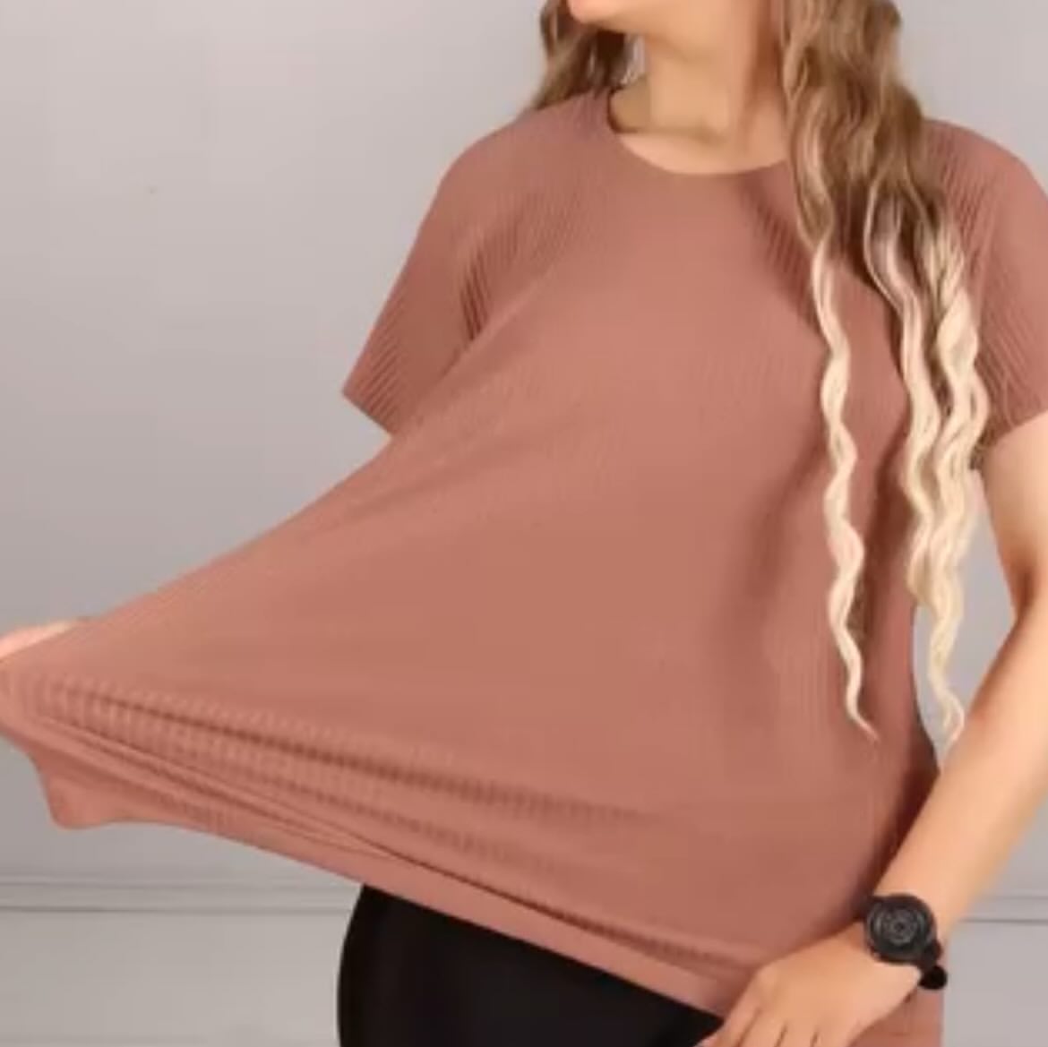 تیشرت قواره دار کرکره یقه گرد