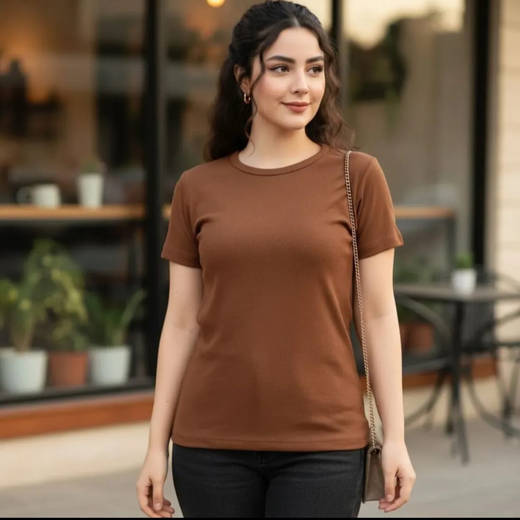 تیشرت یقه گرد کبریتی با قد بلند🤎🤌🏼