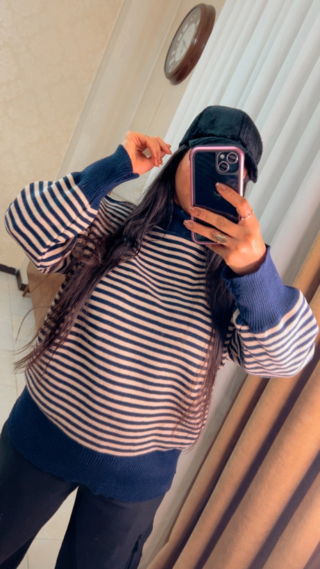 بلوز بافت یقه اسکی راه راه😍