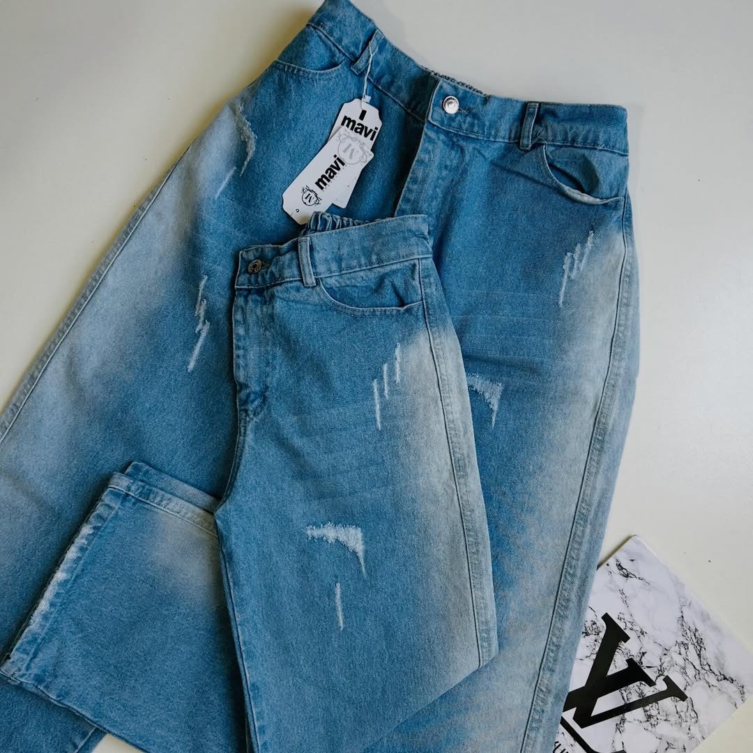 این شلوار جین گرم بالا وایدلگ و پشت کش دار ، در رنگ آبی یخی ۶تاسایزداره ۳۶/۳۸/۴۰/۴۲/۴۴/۴۶