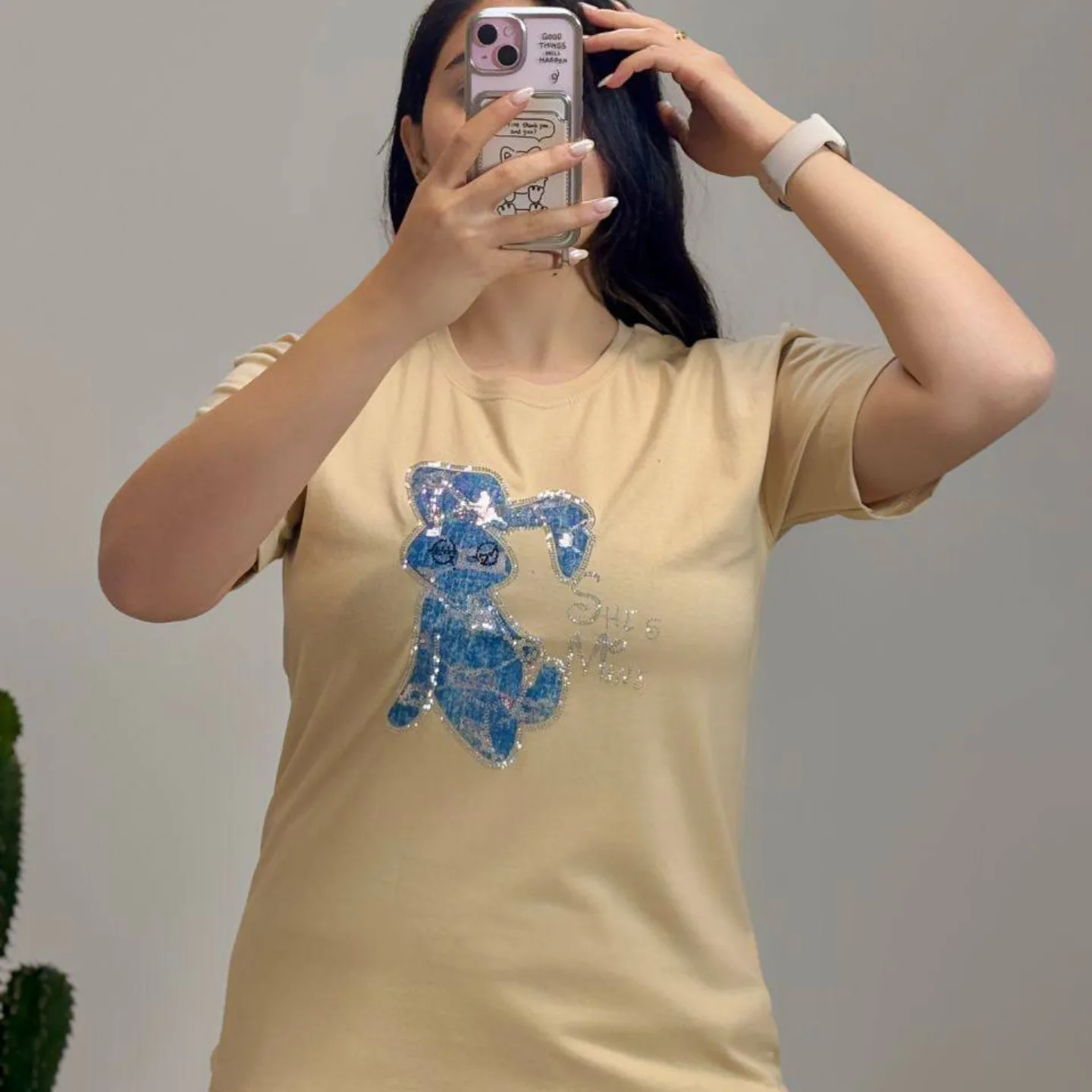 تیشرت نخ پنبه زنانه طرح خرگوشی🐰🥰