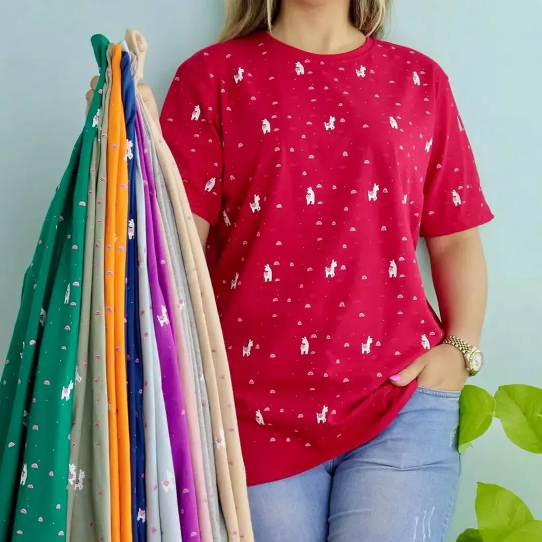 نخ پنبه۱۰۰٪ باکیفیت ترین جنس طرح تیشرت چاپی و کنده نمیشه فری سایز: ۳۸ تا ۴۸ گاها ۵۰ قدکار:۷۵ دورسینه درحالت عادی: ۱۰۵ درحالت کشسانی: ۱۵۵