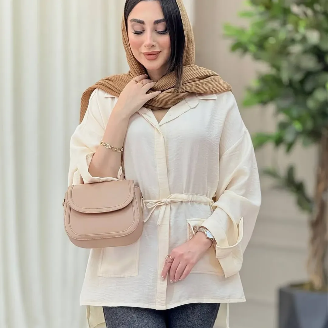 شیکترین وسبک ترین مانتو کمر گتدار جنس: شانتون سوفیا چروک نمیشه سبک وخنک وپارچش لطیفِ فری سایز: ۳۶ تا ۴۴ گاها۴۶ قدجلو مانتو: ۶۸ قدپشت مانتو: ۷۸ دورسینه: ۱۱۲